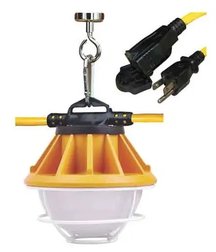 This 100ft LED light string is ideal for temporary lighting needs such as construction sites, jobsites, expos and convention centers and much more. This light string produces 2,500 lumens and 19 watts per lamp head, which gives this light string a total of 25,000 lumens and 190 watts. The string light is also equipped with metal bulb guards on each head and also a female receptacle for connecting additional lights. This is also rated for indoor and outdoor use, and has a 5000 kelvin color temperature.